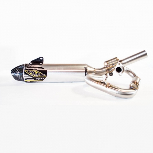 El sistema completo RE 13 está compuesto por una curva de salida de acero inoxidable, un tubo medio de acero inox tambien y un silenciador de aluminio,